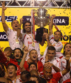 Jogadores com a taça do Gauchão 2008: Inter goleou o Juventude por 8 a 1 no Beira-Rio