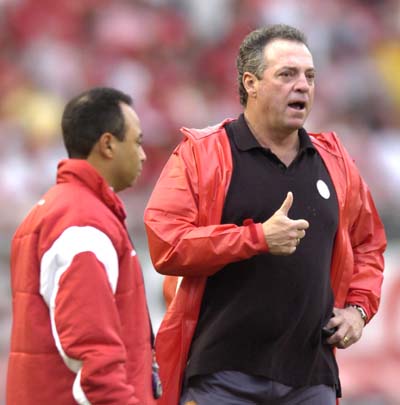 Tonto com a goleada, o técnico Zetti errou a entrada do vestiário no intervalo.
