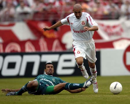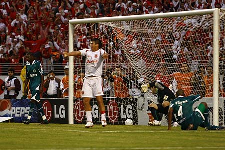 Para passar por cima desta marcação, o time colorado buscava erguer bolas para Fernandão fazer o trabalho de pivô para Alex e Nilmar. Aos 6min55seg, Nilmar arrancou pela intermediária, passou pelo marcador e a bola sobrou para Alex, que entrou na área, ultrapassando dois jogadores e caiu na área, mas o juiz Carlos Simon não marcou pênalti.