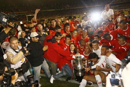 Às 18h13min, o capitão Fernandão ergueu a taça ao lado de Iarley e Clemer. Em seguida, um grande show de fogos no campo do Beira-Rio.
