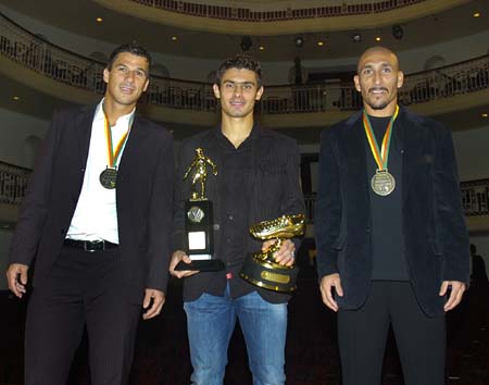 Índio (E), Alex (C) e Guiñazu (D) integram a seleção do Gauchão 2008