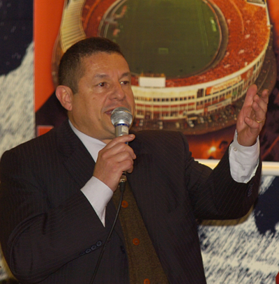 Idealizador dos CDs Ataque Colorado, Kako (E), recebe homenagem de Pires