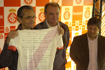 O Internacional e a Reebok lançaram na manhã desta quinta-feira (5/6), na churrascaria Montana Grill, as novas camisas da linha retrô. O lançamento incluiu uma homenagem especial ao jogador Larry Pinto de Faria, centroavante do time colorado da década de 50. Durante o evento, também foi apresentada a coleção casual 'Rumo ao Centenário'.