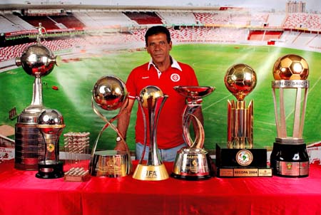 Valdormiro posa com as principais taças conquistadas pelo Inter
