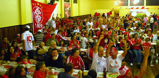 Após o evento solene, a comitiva colorada se dirigiu ao Salão Paroquial da Igreja Matriz, onde cerca de mil pessoas vibraram com os troféus conquistados e comemoraram com grande alegria e felicidade os 100 anos de glórias do Inter. “Nesta localidade, até a lagoa é vermelha. É um reduto de colorados de fé.”, afirmou Gelson Pires.