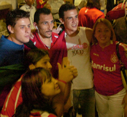 Na chegada ao aeroporto, um grupo de 20 colorados vibrou com a delegação do Inter e fez a equipe se sentir um pouco mais em casa. Com camisas do clube e bandeiras do Rio Grande do Sul chamaram a atenção das outras pessoas no aeroporto enquanto faziam festa e cantavam os tradicionais hinos das torcidas no Beira-Rio.