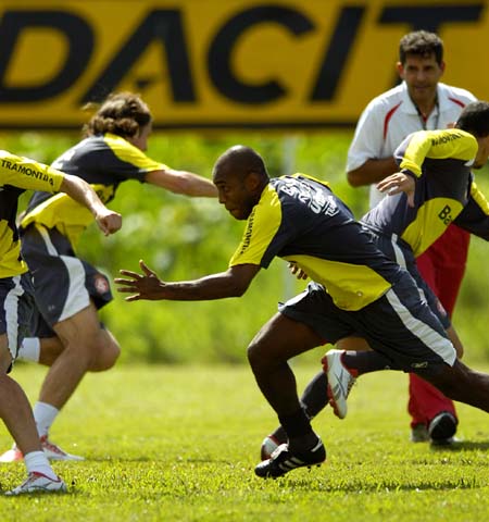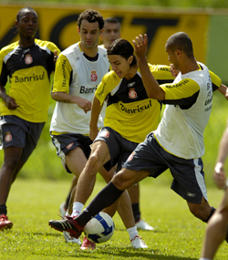 A equipe colorada realizou o último treinamento para a partida na manhã deste sábado no CT do Bahia, localizado nas cercanias de Salvador. O técnico Tite orientou um treino tático no qual exigiu bastante a marcação, a posse de bola e a saída rápida para o contra-ataque. Tite afirmou que está em dúvida em relação apenas a uma posição: o companheiro de Nilmar na frente. Adriano e Gil disputam a vaga. ?Com o Adriano eu tenho um pouco mais de força, velocidade e conclusão, enquanto o Gil me dá retenção de bola e bom passe?, explicou o treinador.