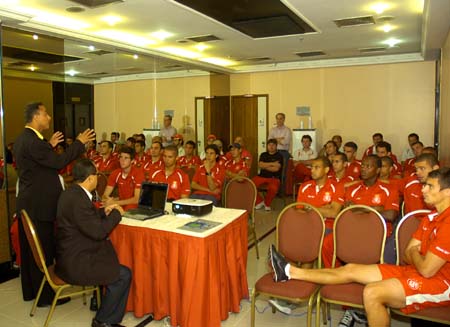 Durante a palestra os jogadores puderam ter a oportunidade de fazer perguntas aos dois experientes instrutores da Fifa. Perassi e Serapiao orientaram sobre a melhor maneira de se dirigir a arbitragem durante o jogo e pediu que evitassem a reclamação depois de uma marcação do juiz. ?Não adianta reclamar depois que o juiz marcou algo. O que se aceita é chamar a atenção para alguma coisa que esta acontecendo e que o arbitro não percebeu ainda?, disse Perassi, que utilizou um telão com orientações aos atletas. A palestra durou cerca de uma hora e foi realizada no próprio hotel onde a delegação está hospedada na capital baiana.