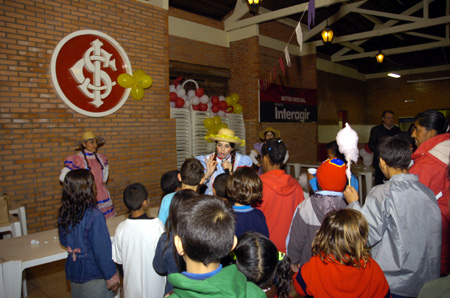 O Inter, através do projeto Interagir - programa social ligado à Fundação de Educação e Cultura do Internacional (FECI) -, alegrou muitas crianças carentes de instituições de Porto Alegre com uma festa junina na tarde desta sexta-feira (04/07), no Parque Gigante, dentro do Complexo Beira-Rio. O evento foi promovido em parceria com a Brasil Telecom e contou com o prestigiou de autoridades da capital gaúcha.