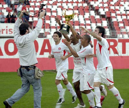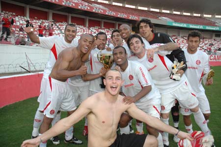 Jogadores carregam a taça do Gauchão 2008 no Beira-Rio