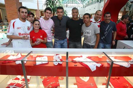 Jogadores visitam quiosque do Inter/Reebok no Praia de Belas
