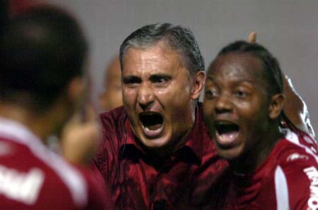 Tite comemora ao lado de Andreiznho o gol de empate contra o Náutico