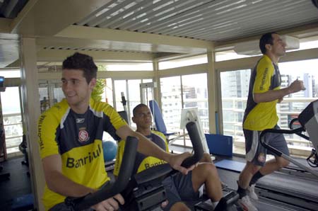 Os jogadores colorados treinaram na manhã desta segunda-feira no Recife antes de começar a viagem de volta para Porto Alegre. O preparador físico Fábio Mahseredjian dividiu o grupo em atletas que atuaram os 90 minutos e atletas que não jogaram todo o tempo. O primeiro grupo realizou trabalhos de musculação e corridas na esteira do hotel onde o Inter ficou hospedado na capital pernambucana. Já os atletas que atuaram os 90 minutos fizeram exercícios de alongamento e trabalhos leves de bicicleta. ?Com esta seqüência de jogos, é fundamental o trabalho de manutenção para os jogadores que vêm atuando, evitando assim um desgaste maior?, explicou Mahseredjian.