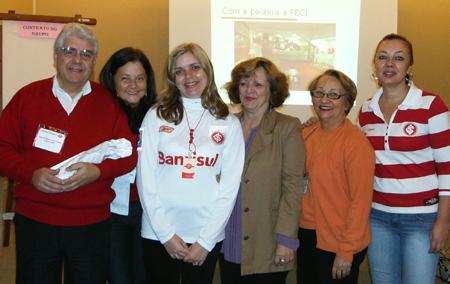 Jorge Luiz Vieira da Cunha (E), pres. da FECI, e a equipe organizadora do Seminário, Dulce Cardoso, Daniela Dalbem, Loudes Banhos, Jussara Pereira e Vera Cardoso