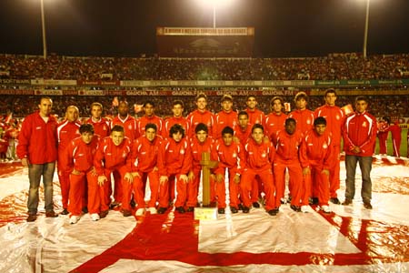 Juvenis, campeões da Copa 2 de Julho, desfilaram com a taça e posaram para foto antes do jogo entre Inter e São Paulo