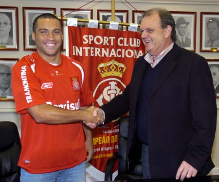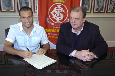 Daniel Carvalho assina o contrato com o Inter ao lado de Piffero