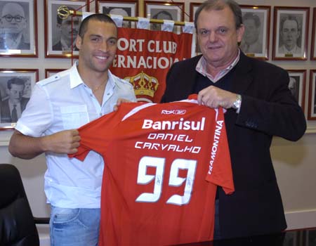 O meia-atacante Daniel Carvalho assinou contrato com o Internacional na tarde desta quarta-feira, no Beira-Rio. O jogador foi emprestado pelo CSKA, da Rússia, até dezembro, e será reforço do time colorado para a disputa do Brasileirão e da Copa Sul-Americana. A cerimônia de assinatura de contrato foi realizada na sala de reuniões da presidência do Clube e contou com a presença do presidente Vitorio Piffero e do diretor executivo de futebol, Newton Drummond. ?Empenho não vai faltar. Espero fazer um grande trabalho no Inter. Quero recompensar a torcida que me recebeu muito bem?, disse Daniel Carvalho.