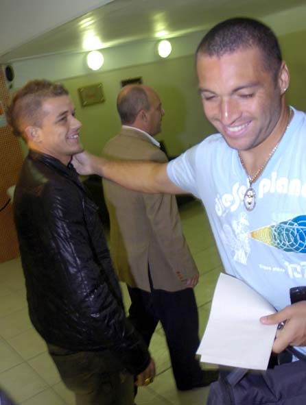 Jogador argentino se encontra com Daniel Carvalho momentos antes da apresentação no Estádio Beira-Rio