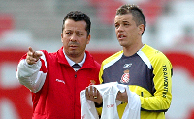 Auxiliar técnico Cléber Xavier (E) orienta o meia D'Alessandro