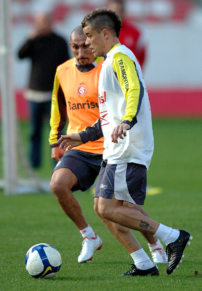 Luiz Carlos, com a bola, treinou pela primeira vez com a camisa do Inter