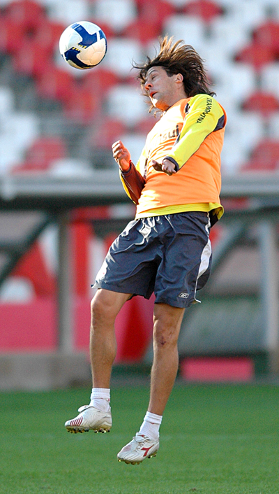 Argentinos Guiñazu (E) e D'Alessandro no treino desta terça-feira