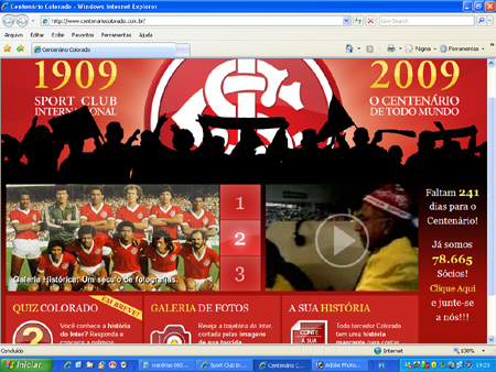 Reprodução do hot site do centenário do Inter