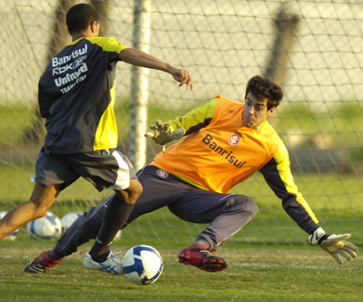 Goleiro Ricardo defendeu profissionais no treino coletivo contra os juniores