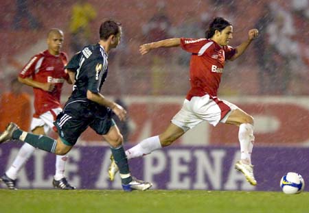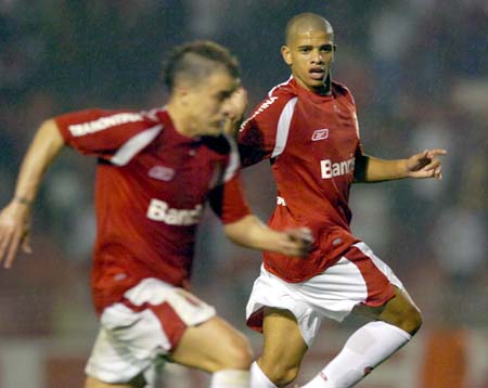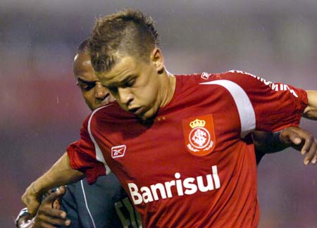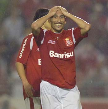 Índio está marcando o seu segundo gol no jogo, o terceiro do Inter