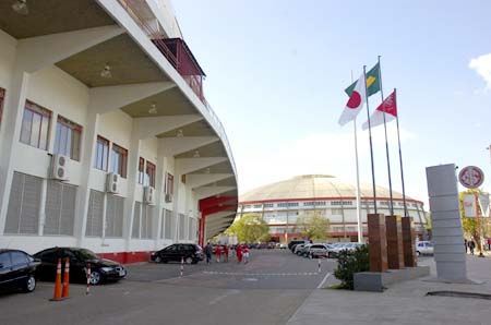 Bandeiras do Inter, Brasil e Japão tremulam no Beira-Rio sinalizando o intercâmbio