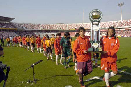 Garotos da equipe sub-14 exibem troféu do torneio comemorativo ao centenário da imigração japonesa no Brasil