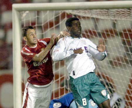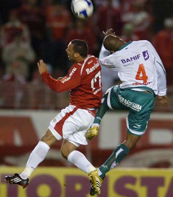 Magrão salta para cabecear: volante marcou o gol da vitória no Beira-Rio