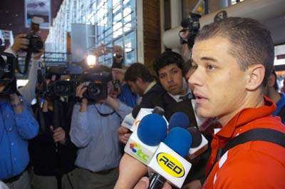 D'Alessandro recebe o assédio da imprensa chilena no aeroporto