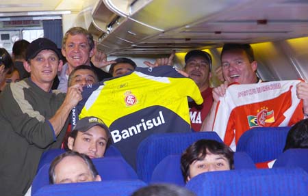 A viagem até a capital chilena foi a mais tranqüila possível. Em um avião fretado, o vôo durou cerca de três horas e teve momentos deslumbrantes. A passagem pela Cordilheira dos Andes, o Monte Acongágua, ponto mais alto da América, e seus cumes cobertos de neve foi admirada pelo grupo de 21 atletas que viajaram. A equipe teve também o apoio de cerca de 60 torcedores que pagaram o pacote para viajar junto e apoiar o Inter em busca da vitória.