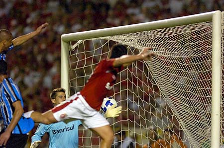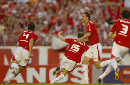 E finalmente no quarto, D´Alessandro ergueu a bola para Nilmar dar um belo toque de cabeça, no contrapé do goleiro. Quatro gols para a história!!!