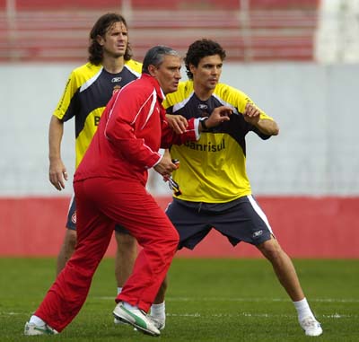 Tite interage com Bolívar no treino: Inter pronto para enfrentar os chilenos