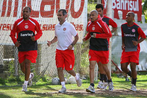 O grupo do Inter teve pouco tempo para comemorar a vitória no Gre-Nal 378. Já na tarde desta segunda, os jogadores se reapresentaram no Beira-Rio para treinar visando o confronto no Morumbi. Quem atuou no clássico realizou apenas exercícios de regeneração física. Os demais, inclusive quem jogou parte do Gre-Nal, participaram de um coletivo contra o Inter B, no suplementar.