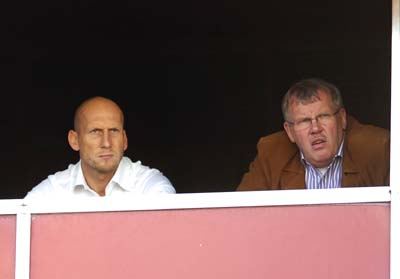 > Uma figura ilustre assistiu ao jogo entre o time júnior do Inter e o Cerâmica, de Gravataí, válido pela Copa FGF/Lupi Martins, na tarde desta quarta-feira, no Beira-Rio. Trata-se do zagueiro holandês Jaap Stam (à esq. na foto), que disputou a Copa do Mundo de 1998, além de ter atuado no PSV Eindhoven, Milan, Roma e Manchester United, clube pelo qual conquistou o Mundial Interclubes, em 1999. Atualmente, Stam é observador do time inglês, e percorre o mundo em busca de novos craques. ?Gostei do jogo. Estou fazendo um trabalho de análise do futebol brasileiro?, revelou o holandês, que viu o jogo das cabines de imprensa do Beira-Rio.