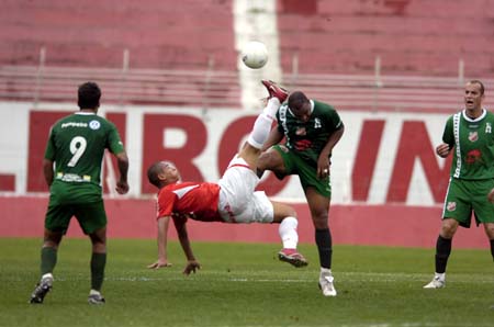 Zagueiro Bregalda em ação contra o time de Santa Maria
