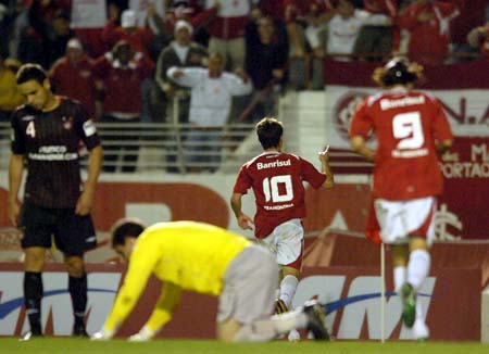 Mas um lance de genialidade de Alex, aos 37min da partida, mudou este panorama. Após boa jogada tramada por D'Alessandro na intermediária, Alex recebeu a bola de costas para a marcação. De forma ágil e certeira, girou na frente do adversário e avançou com a bola dominada. De repente, Alex segurou a bola e fez um lançamento milimétrico para Nilmar no interior da área. Parecia uma jogada de futebol de salão, tamanha a precisão do passe. Nilmar teve categoria suficiente para desviar a bola e encobrir Galatto. Golaço no Beira-Rio, o 14º de Nilmar no Brasileirão, artilheiro do time colorado na competição!