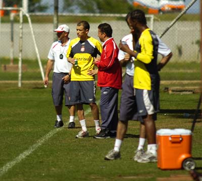 D'Alessandro (ao fundo) acompanha o coletivo dos jogadores que não atuaram