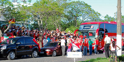 Para dar inicio às comemorações uma carreata de 300 automóveis tomou conta das principais ruas da cidade, colorindo de vermelho e branco. O ônibus campeão de tudo à frente, os carros em fila com as bandeiras vermelhas ao vento protagonizaram um belo espetáculo para toda a população ver.