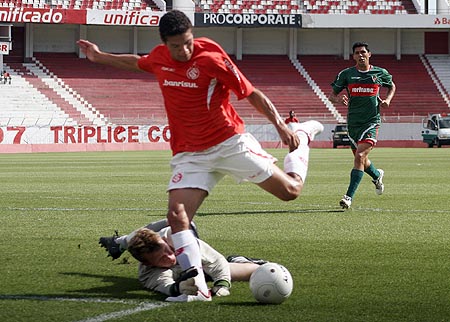 Os minutos iniciais da partida foram marcados pelo equilíbrio. Os times tocavam a bola em busca da melhor jogada. Mas a partir dos 105in, o Inter estabeleceu o domínio do jogo. Aos 17min, Tales fez um lançamento primoroso para Marquinhos, que invadiu a área, driblou o goleiro e tocou com categoria para fazer 1 a 0.