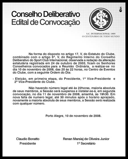 Edital de Convocação do Conselho Deliberativo: Eleição 2008