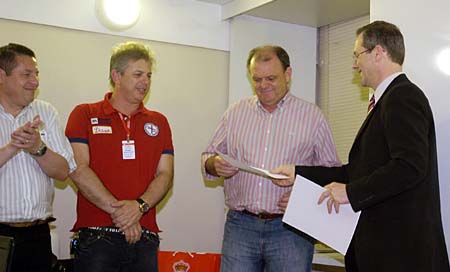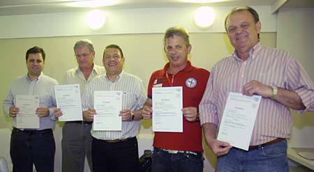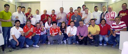 Dirigentes colorados exibem orgulhosos o certificado de qualidade do Inter