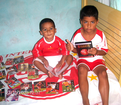 Os torcedores Fábio Lucas e Luis Fábian foram agraciados pelo Internacional com cartões de autógrafos de todos os jogadores e com o DVD 'Gigante - Como o Inter conquistou o mundo'. As crianças juntamente com seu pai Luciano Emiliano já estão acostumados a vibrar e torcer pelo Inter quando o colorado vai a Recife. Na partida contra o Náutico, pelo Campeonato Brasileiro, Luciano e Fabio visitaram o hotel da delegação e puderam conhecer seus ídolos de perto. ?Tudo que recebo sobre o nosso amado Sport Club Internacional tem um valor muito importante, e é guardado com muito carinho, sendo enviado diretamente do Inter esse valor aumenta ainda mais?, afirma Luciano.