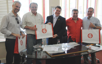Na manhã desta sexta-feira, o presidente do Sport Club Internacional, Vitorio Piffero, se reuniu com o presidente do Conselho Regional de Engenharia e Arquitetura do Rio Grande do Sul (CREA-RS), o engenheiro civil Luiz Alcides Capoani, para firmar uma parceria visando a Copa do Mundo de 2014, no Brasil. O vice-presidente de patrimônio do Clube, Emídio Ferreira, e o presidente do Instituto de Perícias e Engenharia de Avaliações do Rio Grande do Sul (IBAPE-RS), Marcelo Saldanha, ao lado de seu diretor de inspeção predial, Geraldo Ozio, também estiveram presentes no encontro.
