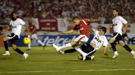 Edinho em ação contra o Estudiantes