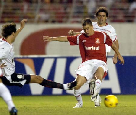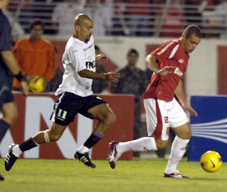 Nilmar se livra da marcação adversária