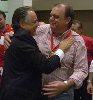 Fernando Carvalho (E) e Vitorio Piffero comemoram conquista