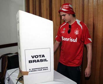 Sócio com o visual 'Guiñazu' votando em Passo Fundo